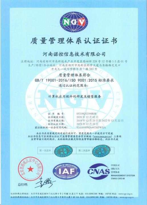 質量管理(lǐ)體(tǐ)系認證證書(shū)