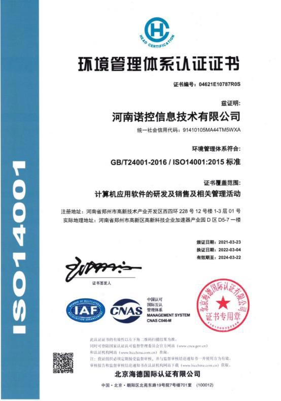 環境管理(lǐ)體(tǐ)系認證證書(shū)
